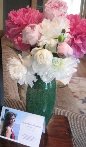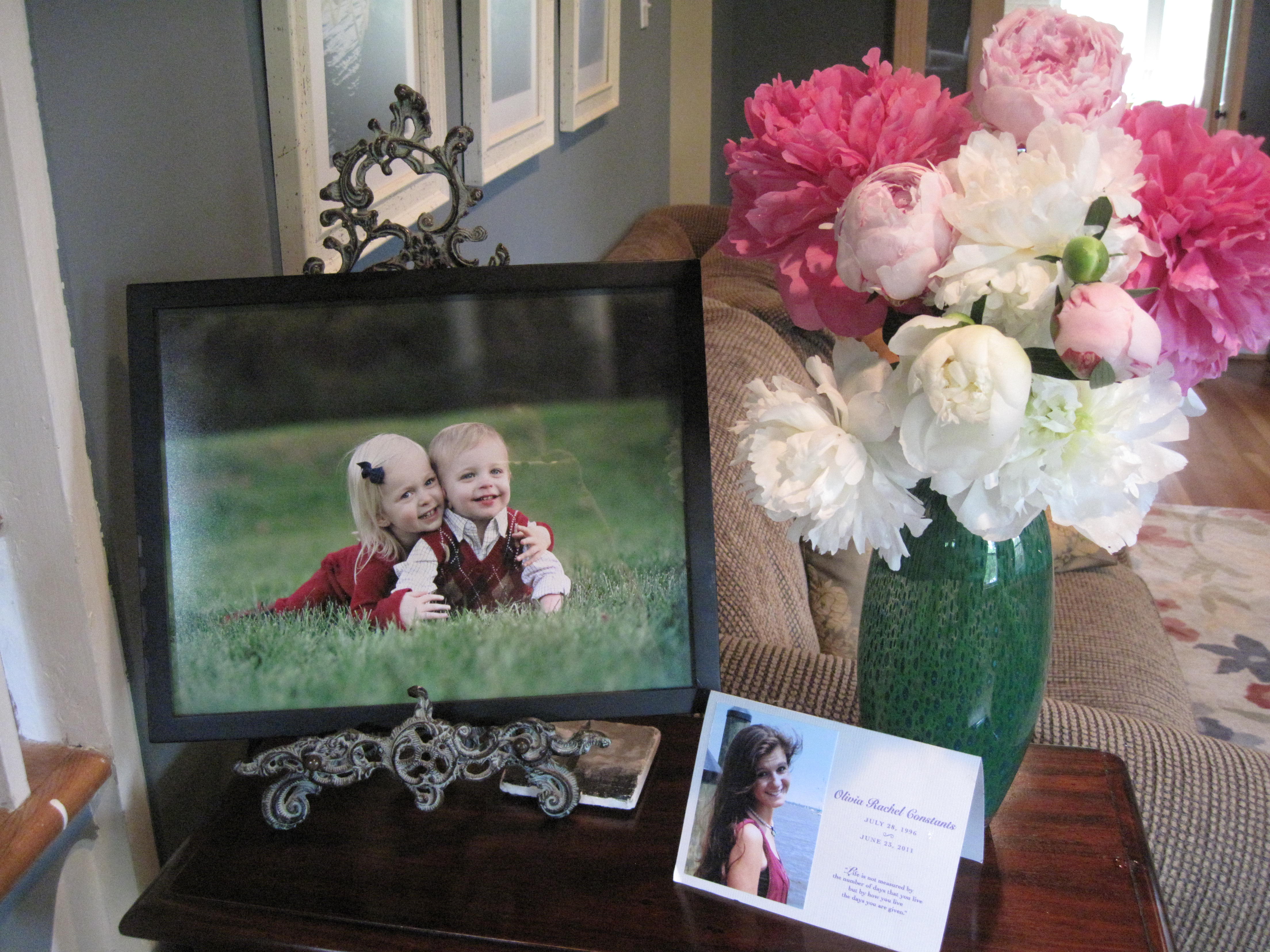 Olivia’s photo at our front door, with peonies, which fittingly represent healing and life.